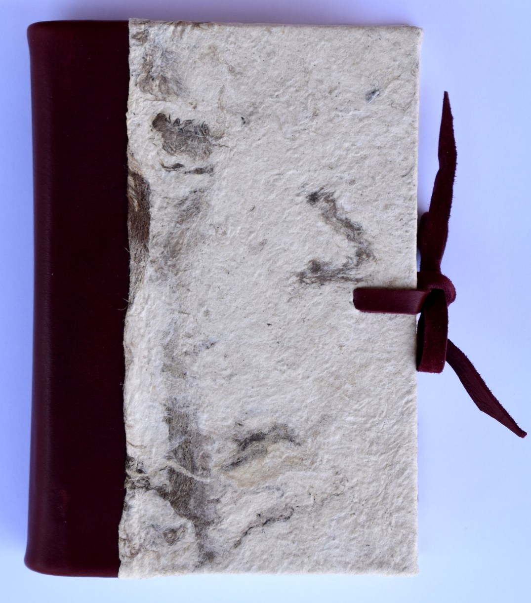 Ogni agenda “Daisy in the Book” è un prodotto unico, disegnate ed assemblate artigianalmente, vengono realizzate utilizzando materiali provenienti dal tutto il mondo. In questo caso l’agenda è stata rivestita da una speciale carta proveniente dal centro america, il Papel Amate, ottenuta ribollendo la corteccia interna di alcuni alberi del genere Ficus. Pestando a pietra il reistente materiale fibroso, si produce una carta sottile e delicata di colore marrone chiaro e con increspature più scure.