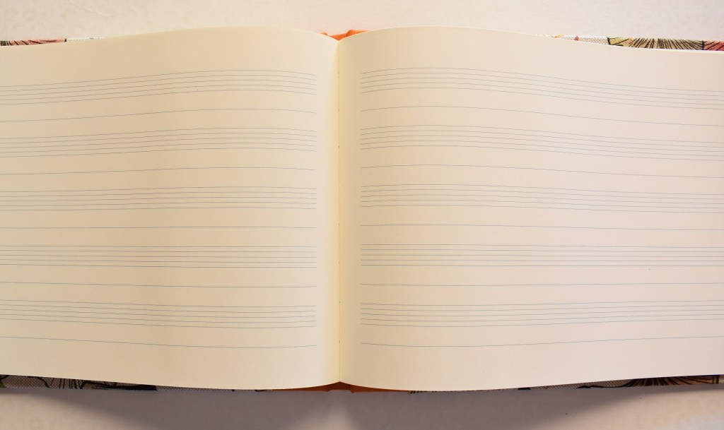 L’interno misura 17×24 cm e contiene 40 fogli con spartiti.