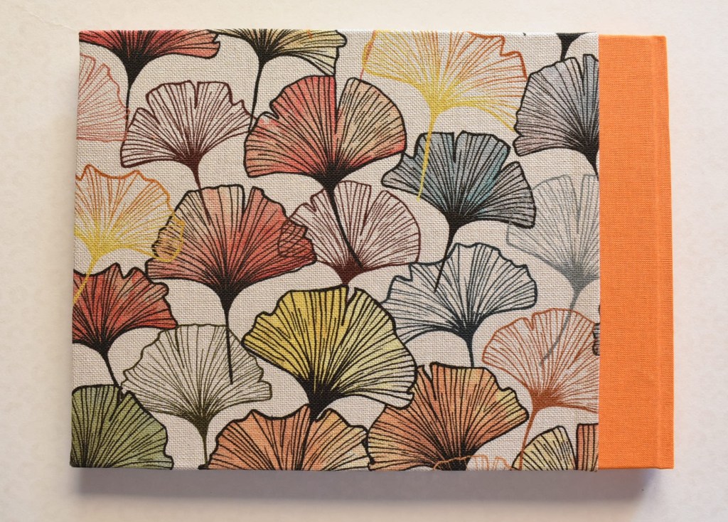 Art. 0176 – Pentagramma in copertina rigida rivestita in tela con stampa (Ginkgo Biloba) e dorso in tela.