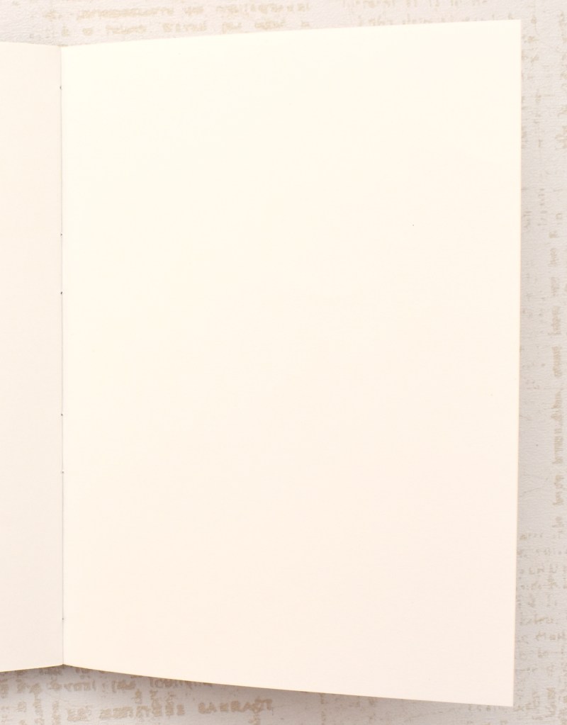 Art. 0303 – Quaderno con inserto in legno pirografato e dipinto a mano, rivestito in carta lavabile con effetto legno. L’interno è costituito da 60 fogli bianchi in carta Arcoprint milk Fedrigoni (110 g/m2) interamente cucito a mano (dimensioni 17 x 24 cm).