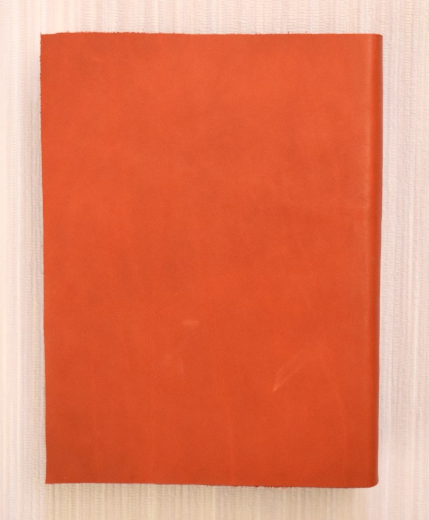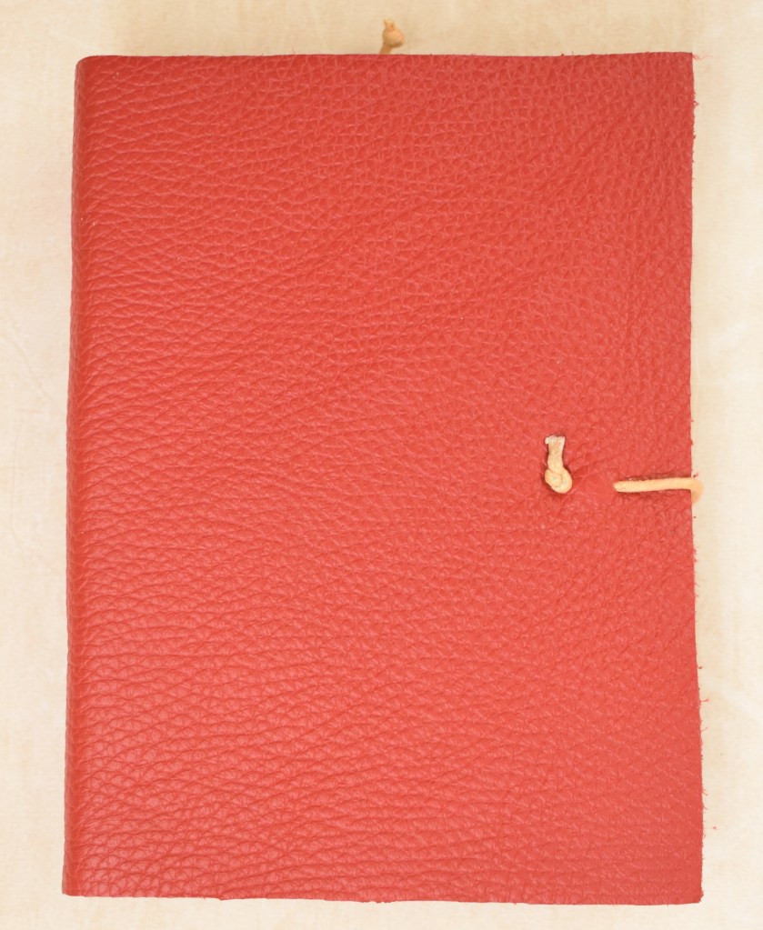 Art. 0114 – Quaderno in pelle rossa, con spirale in rame e laccetto panna, interno a righe o bianco (a scelta)
