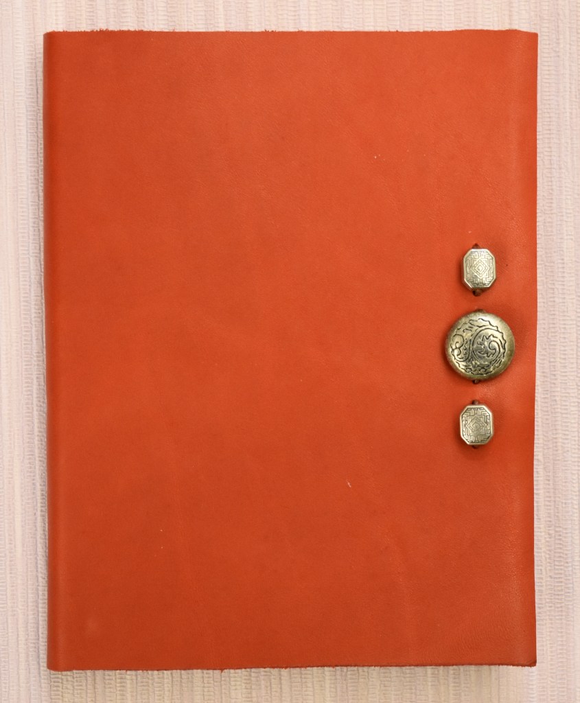 Art. 0117 – Quaderno in pelle rossa, con decori etnici, interno a righe o bianco (a scelta)
