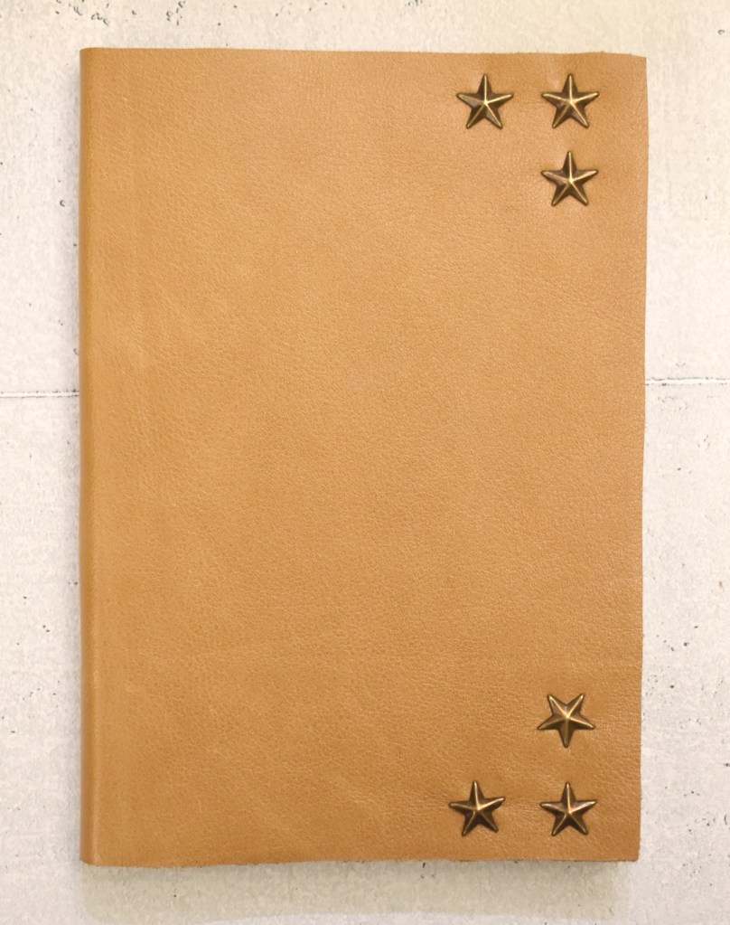 Art. 01110 – Quaderno in pelle caffè, con borchie stella, interno a righe o bianco (a scelta)
