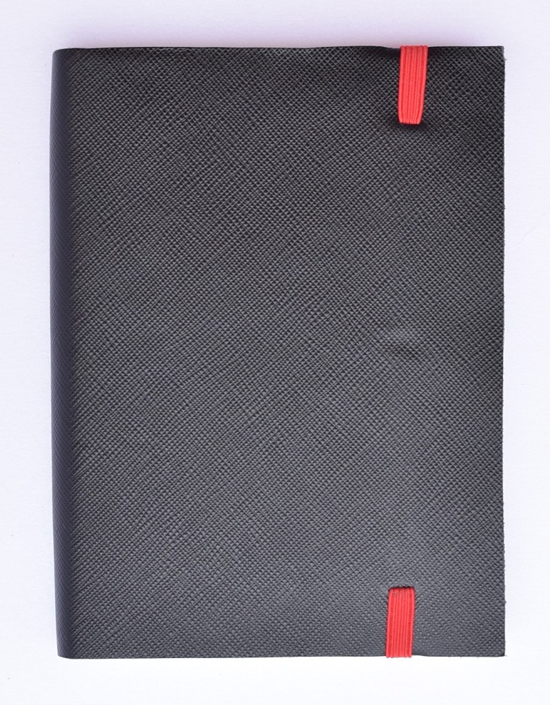 Art. 0120 – Pelle nera goffrata lucida con elastico rosso