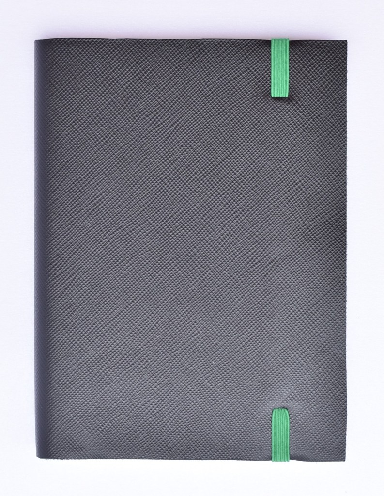Art. 0119 – Pelle nera goffrata e lucida con elastico verde